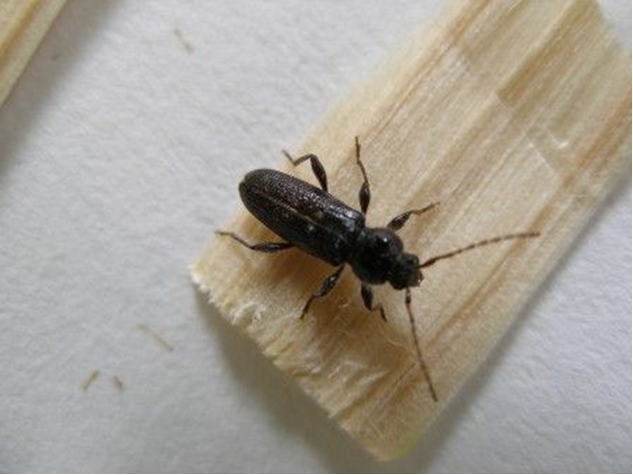 Ličinka (»crv«) i odrasli primjerak drvnog insekta (kućna strizibuba ili Hylotrubes bajulus)